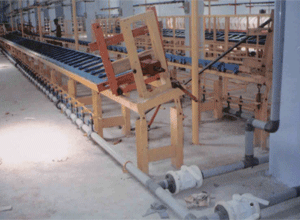 There are 45 - 60 moulds installed on movable special trolleys and one end fixed frame while other and movable tightening screw trolley. The inclination of complete bench can be set us per required degree of slope. But the moulds are inclined towards the operation side, which will be emptying all moulds for its return line slip.