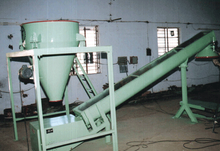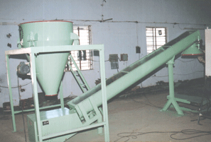 At the bottom end screw feeder placed, it has been made from worm with leg support & rotates through gear box & 3 H.P. motor.